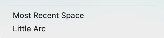 You have the option to select any of your spaces from the list, or indicate that you want new links opened in the most recent space or in Little Arc.