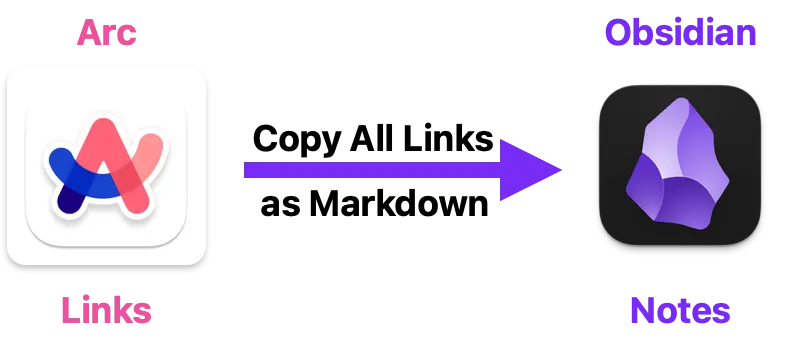 Did you realize you can actually copy all tabs within a folder in the Pinned Tabs of the Arc sidebar to an Obsidian note as Markdown links? This is so powerful, convenient, and easy to do in a few simple steps.
