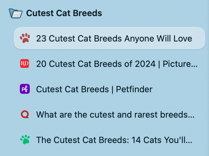 - But it also automatically creates a tab folder in your sidebar with the name "Cutest Cat Breeds" that will contain these 5 tabs.