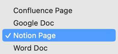 You can choose to use a Confluence Page, Google Doc, Notion Page, or Word Doc.