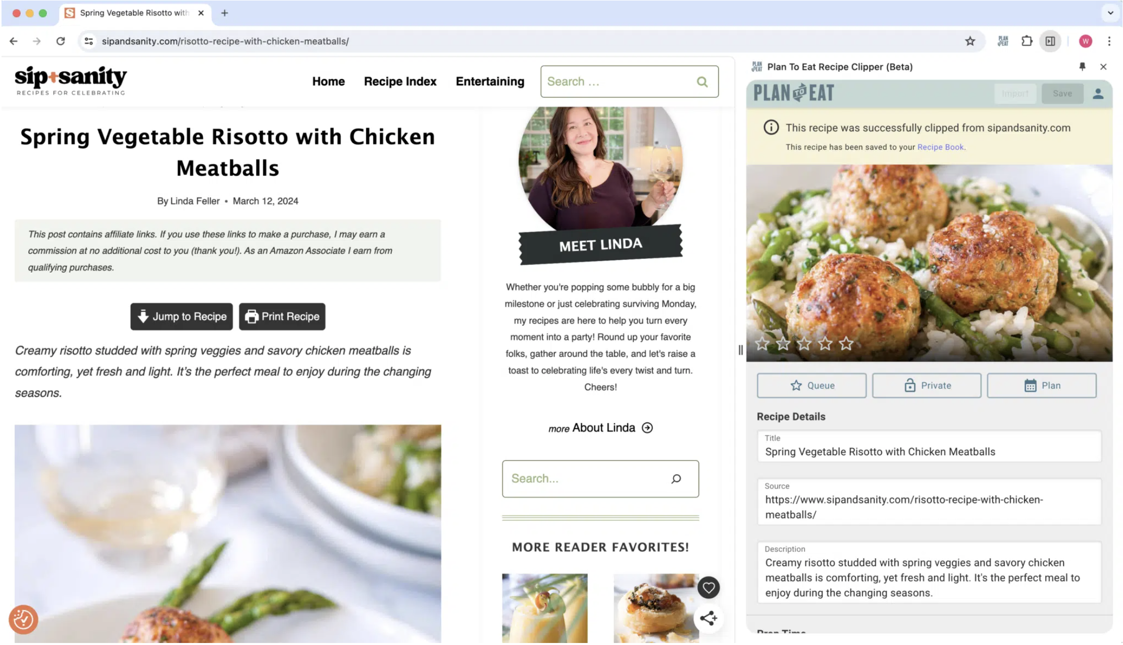 Full Flexibility: Make changes, add recipes to the Queue, set it as Private, and plan your meal right from the import window.