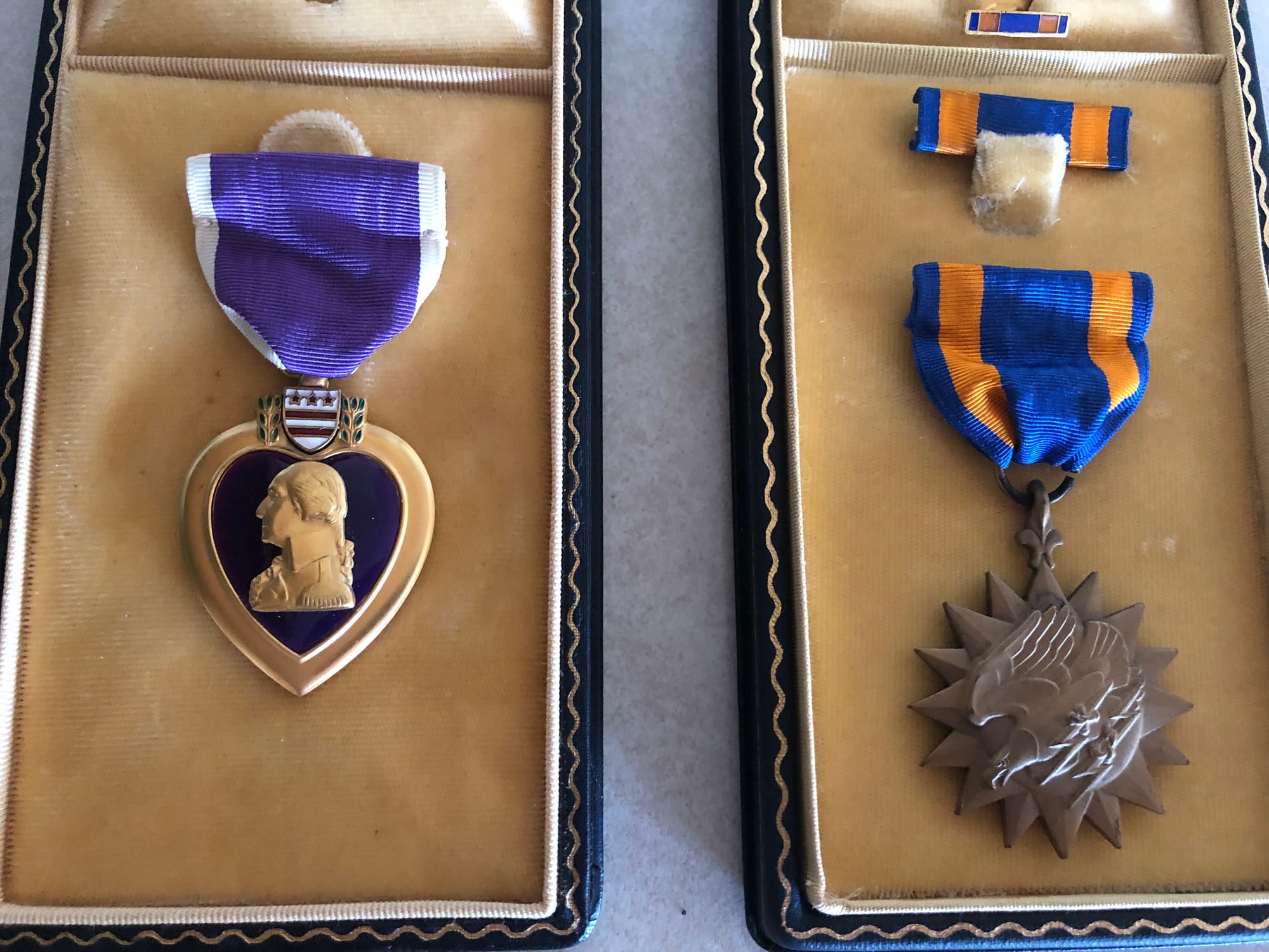 My 10-year grandson Jake was staying over for the weekend about 11 years ago; he was working on a project related to Memorial Day in school. I told him about my Uncle Doug, and he was very impressed and proud when I actually showed him his Purple Heart and Air Medal (both engraved on the back with Douglas M. Warren). They were presented to my grandmother after the war, and then passed down to me by my father.